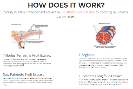 The makers of Vitality XL Enhancement claim that it improves the vasodilation to the corpora cavernosa chambers. When more blood flows to the chambers, the chambers’ muscles generate and sustain larger and stronger erections.