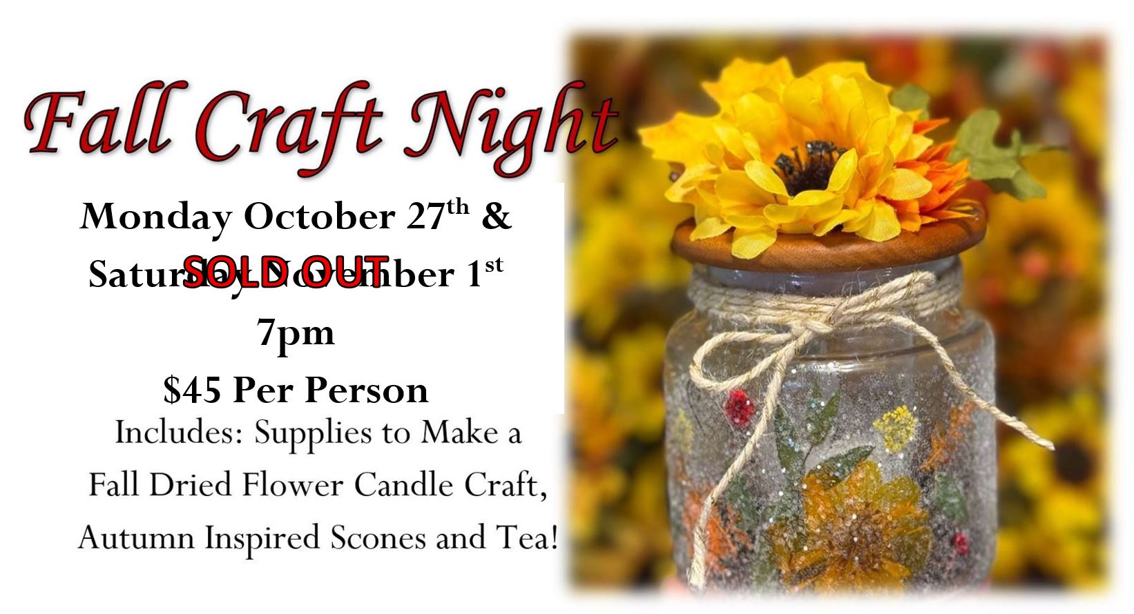 Sorry Our Fall Craft Nights Are SOLD OUT