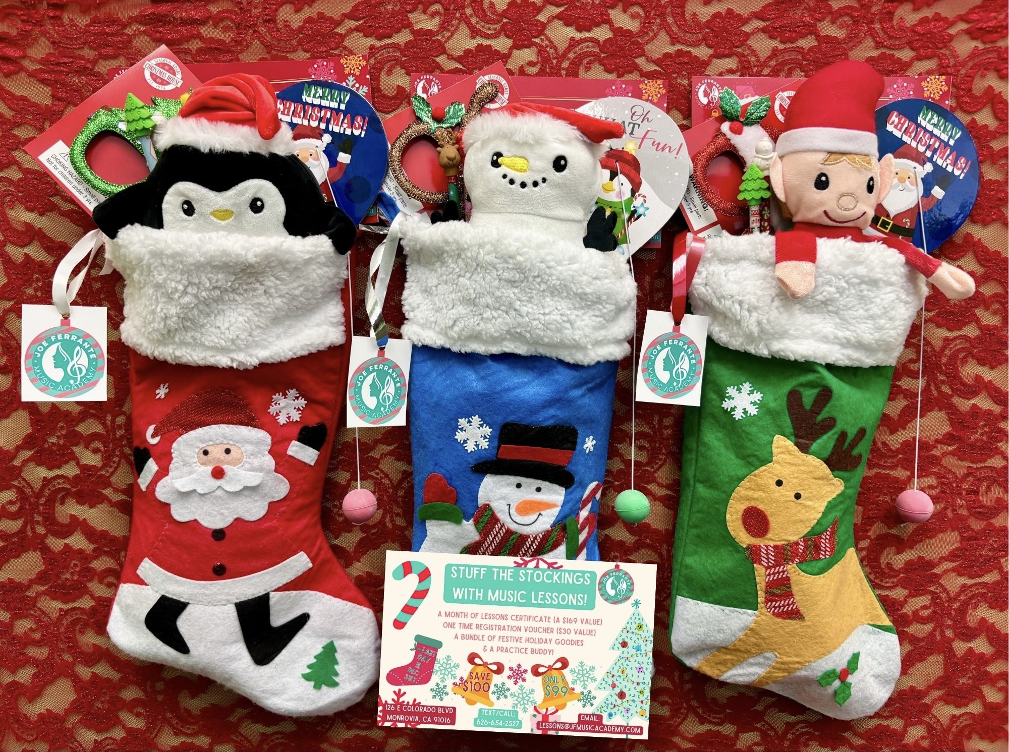 What better way to celebrate the holiday season than with music and Christmas stockings? Take advantage of our special offer for new students or existing students starting second instruments to get some holiday gifts checked off your list and save over $100 at the same time!